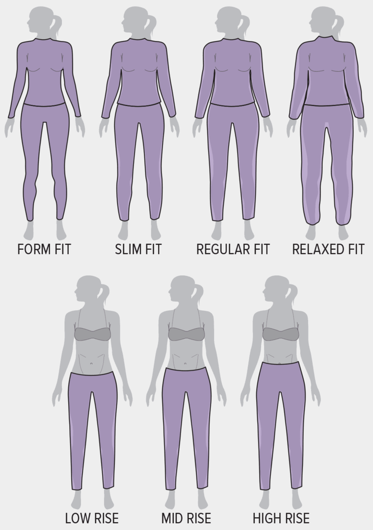 Form Fit: Passt sich dem Körper an. Am häufigsten in Basiskleidung verwendet.